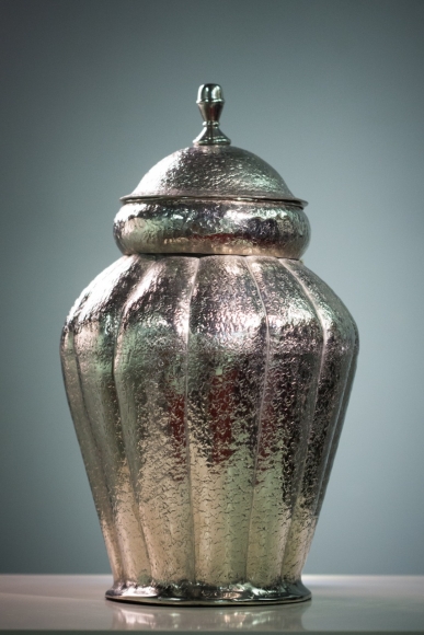 ADORNO METAL INDIA TIPO URNA PLATEADO 17"H
